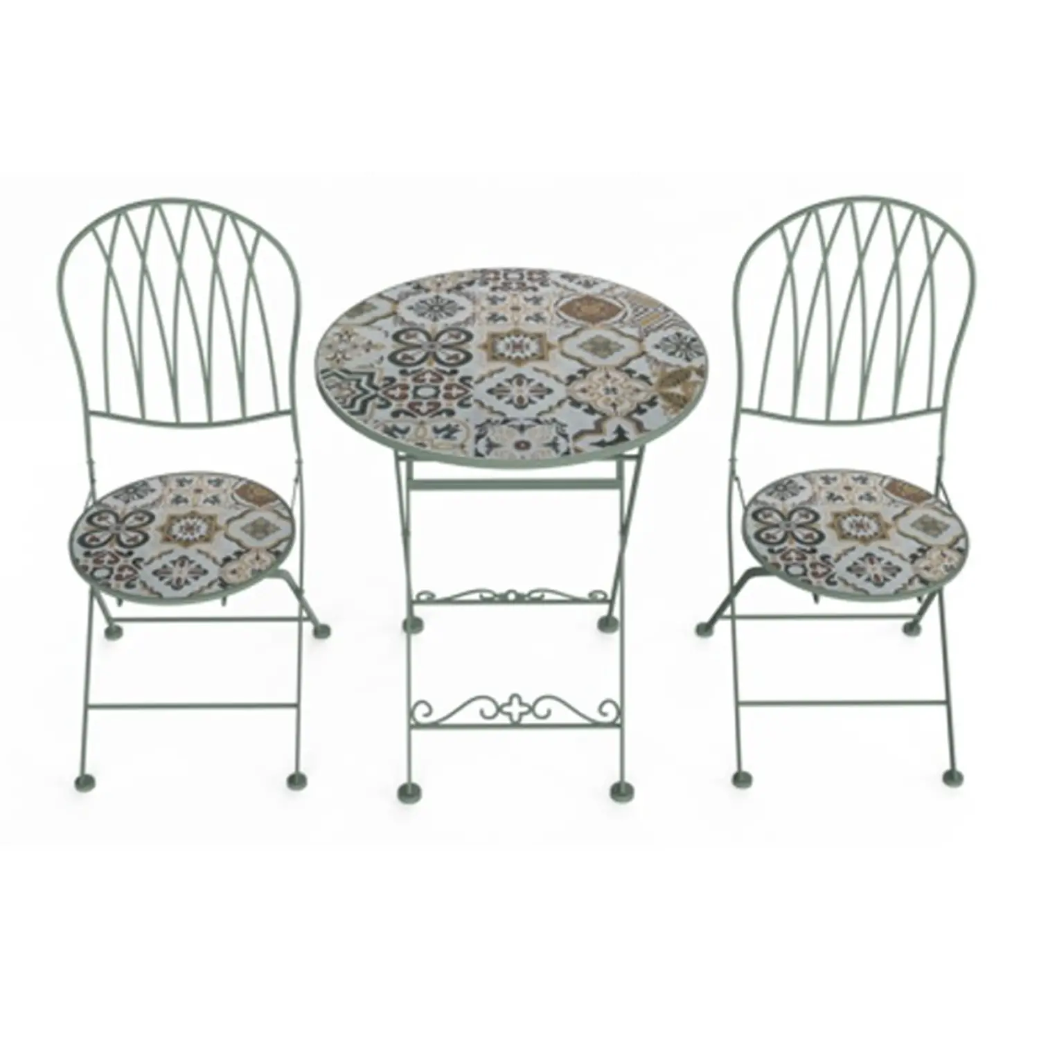 Capri Folding Table and 2 Chairs Set, Sage Green Majolica Motif