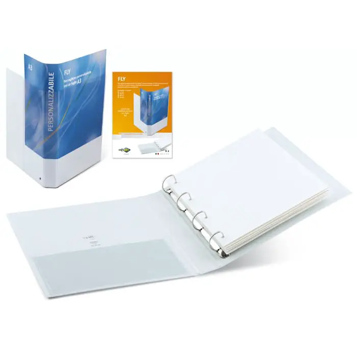 - ✅ Raccoglitore bianco personalizzabile con tasca interna per fogli A3, ideale per documenti e presentazioni.