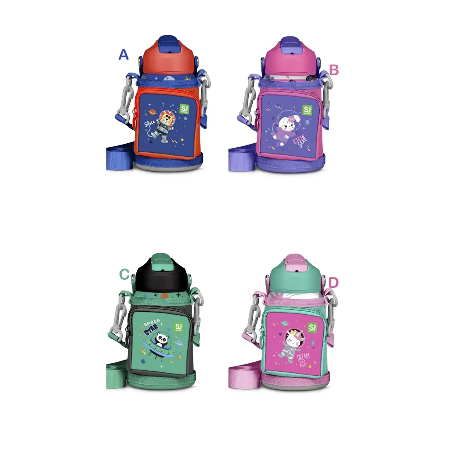 Ideale per scuola, sport e viaggio: Con capacità di 350 ml e dimensioni compatte (7,5 x 18,5 cm), è perfetta da portare nello zaino o nella borsa, con portaborraccia incluso per la massima comodità.