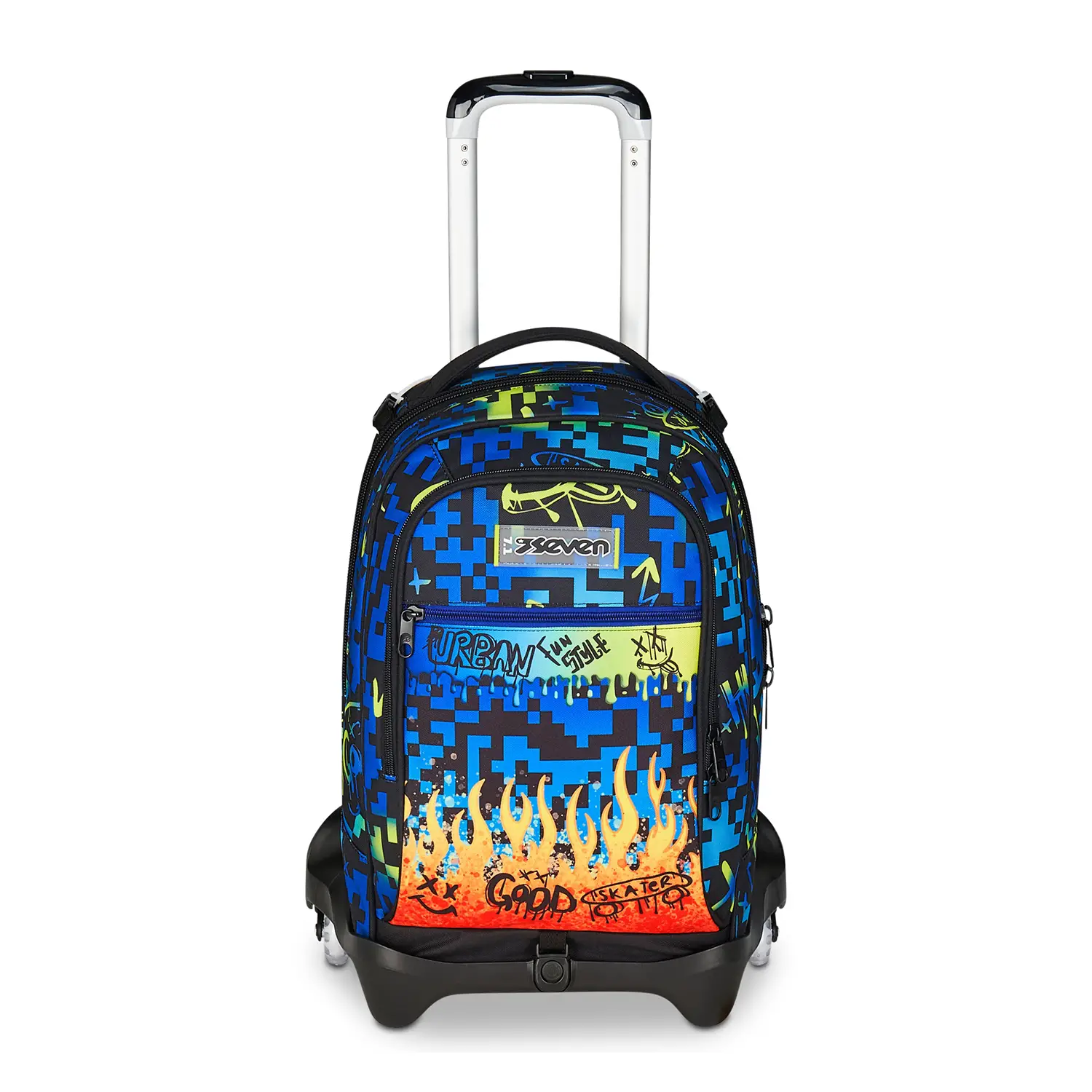 Jack-3WD+ trolley: practical, durable, transformable The Seven® Jack-3WD Scribbled Flame Trolley is backpack and trolley in one. With eye-catching graphics and a decomposable structure, it is perfect for school and leisure.