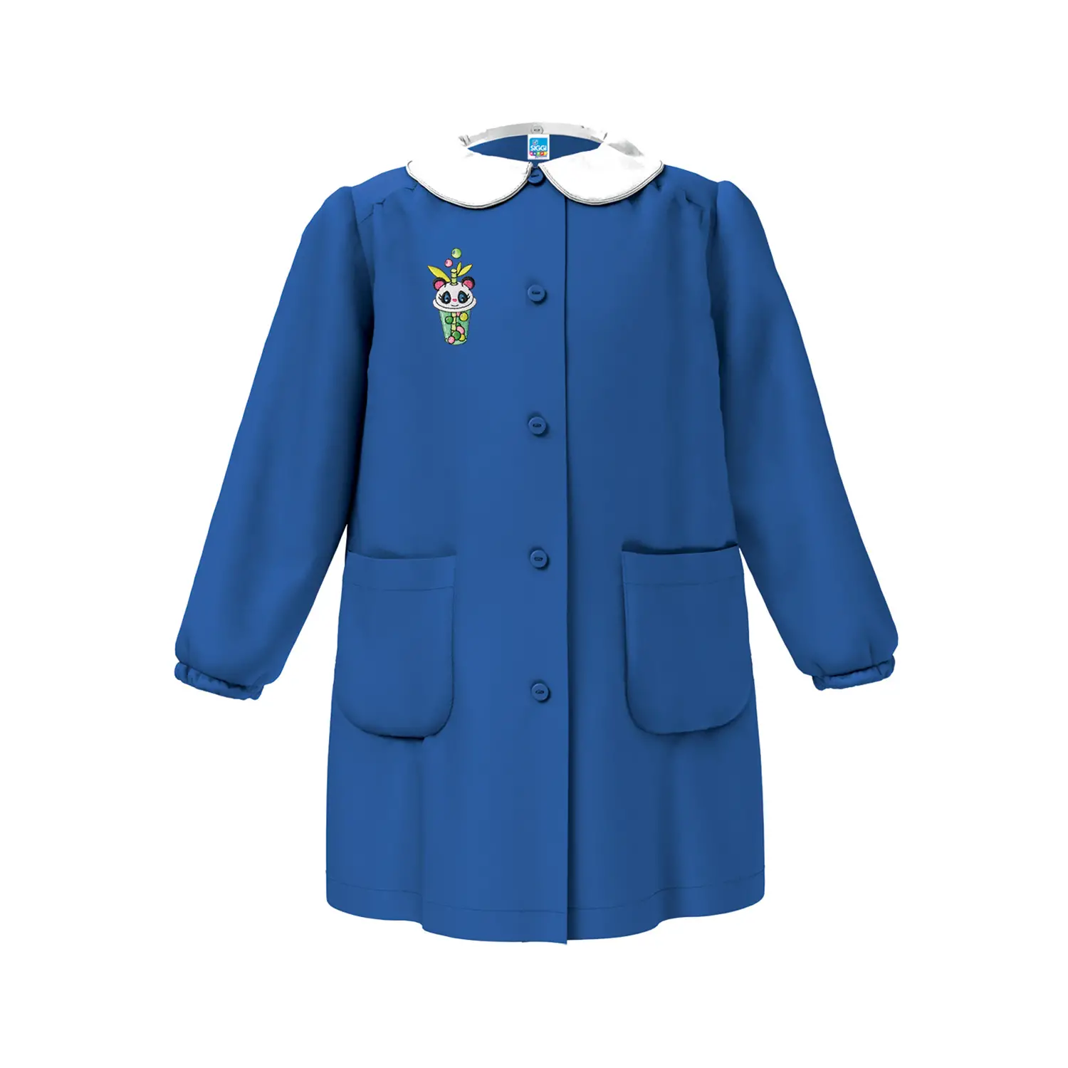 - ✅ Blue girl's school apron size 6 years with Bubble Tea embroidery