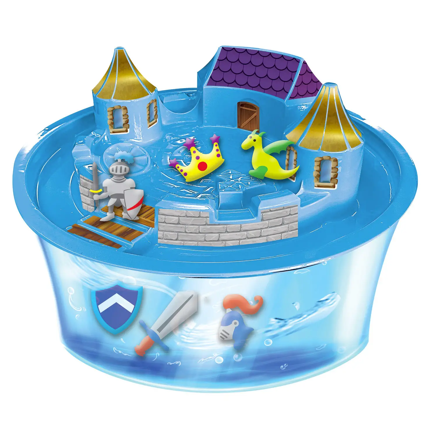 Castello Medievale Interattivo La grande ciotola con coperchio blu a forma di castello consente di far galleggiare le creazioni o inventare avventure cavalleresche. Un ambiente di gioco coinvolgente che arricchisce l’esperienza creativa con l’elemento acqua.