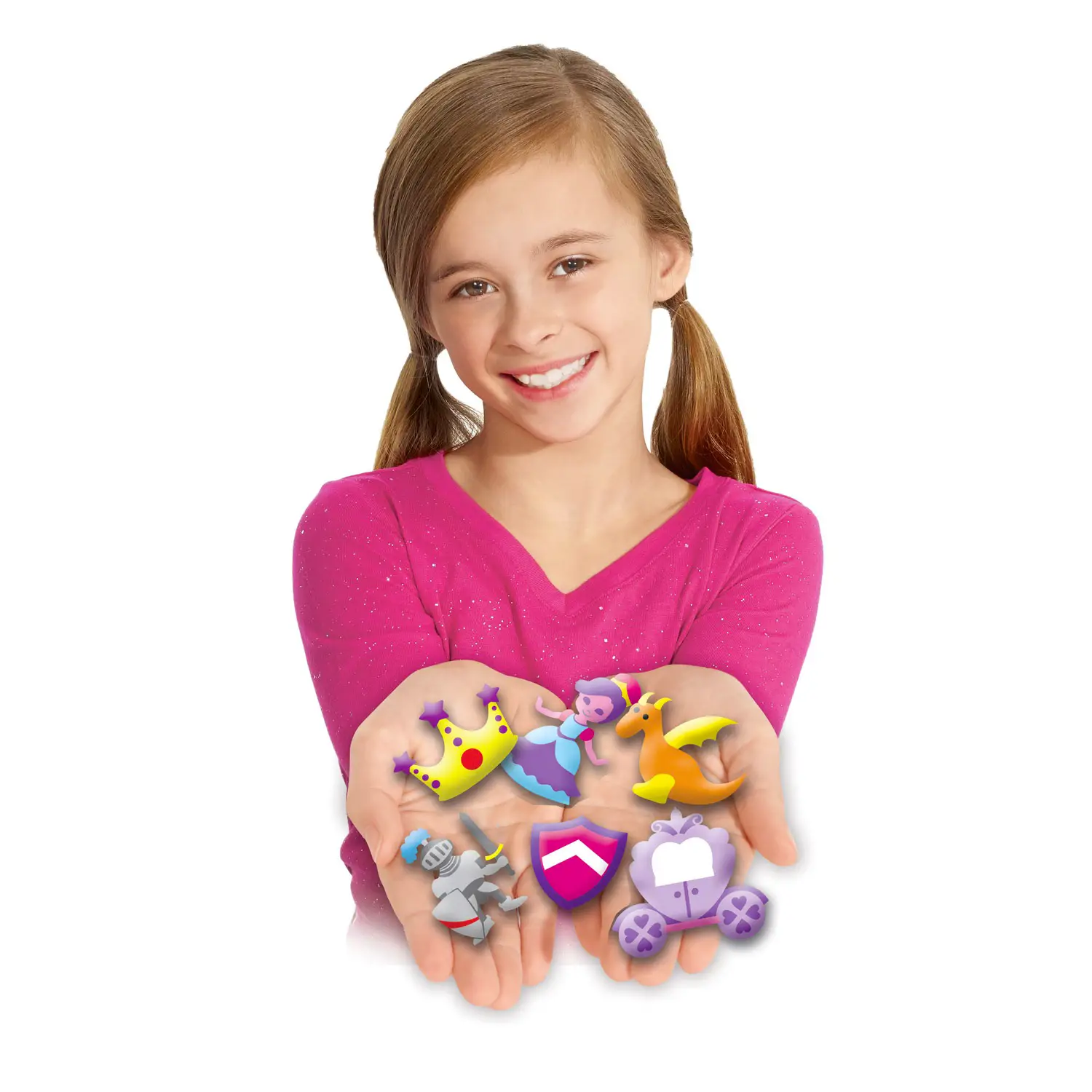 Set Completo e Ricco Il kit include 8 flaconi di gel colorato, 6 stampi, 5 additivi per l’acqua, adesivi decorativi e una ciotola con accessorio castello. Tutto il necessario per creare infinite combinazioni personalizzate.