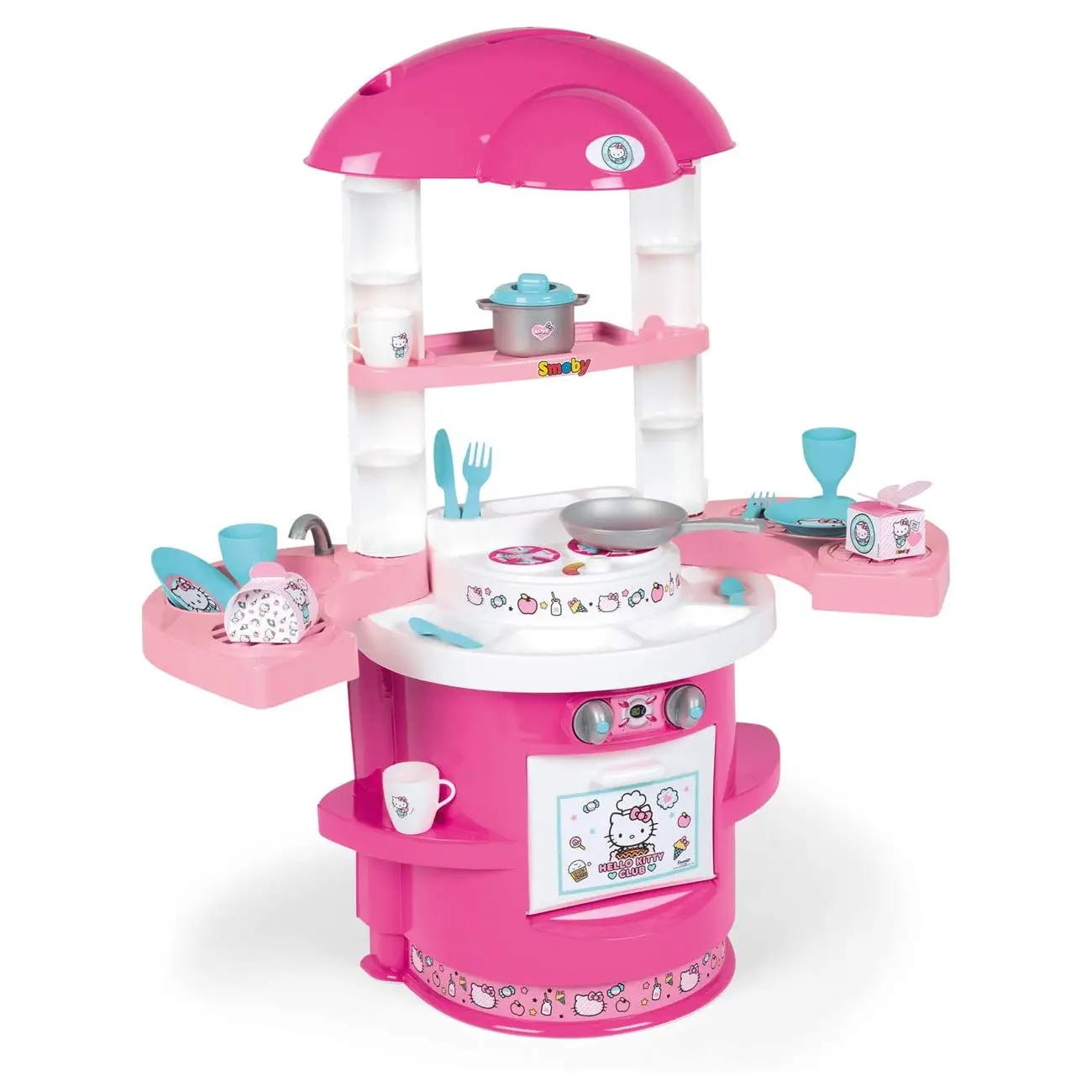 - ✅ Hello Kitty toy kitchen with pink and white colors and rounded lines, ideal for children from 3 years old.