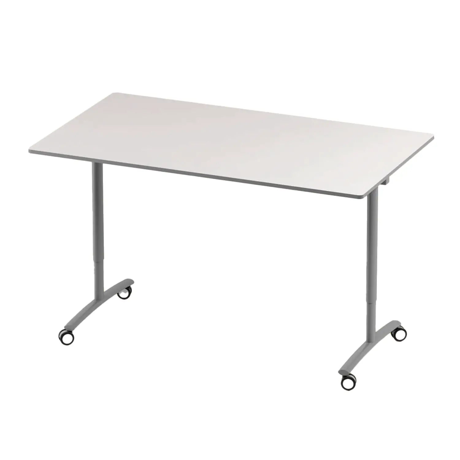 Tavolo ribaltabile salvaspazio Il piano ribaltabile consente di ripiegare il tavolo verticalmente, facilitando stoccaggio, trasporto e ottimizzazione degli spazi in aule, uffici e sale formazione.