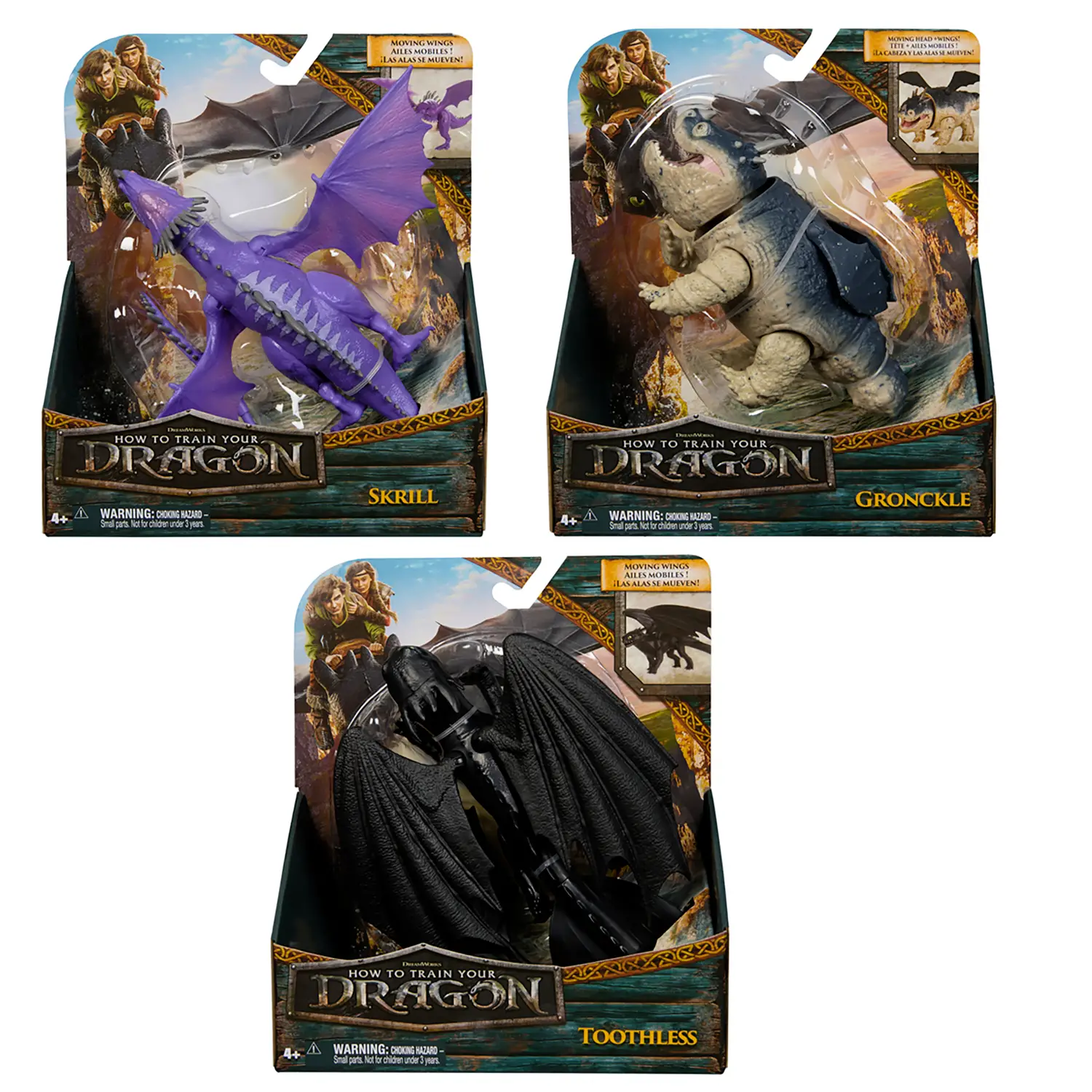 The best-loved dragons in 15 cm scale: - Relive the excitement of the world of "How to Train Your Dragon" with the iconic characters Toothless, Gronkie, Smash and Skrill in a compact collectible format.