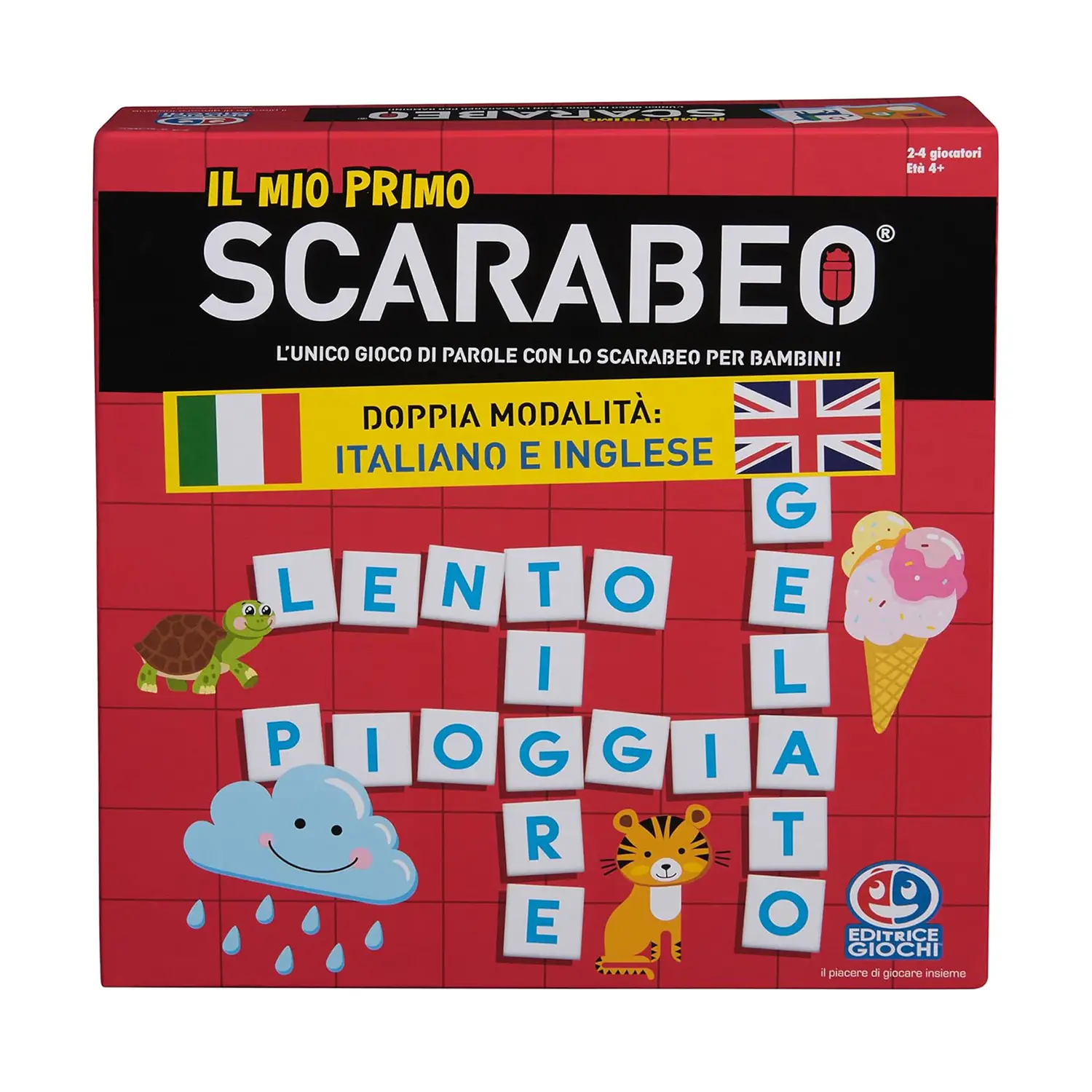 - ✅ Contiene plancia di gioco fronte-retro, 144 tessere lettere e 4 segnalini 3D scarabeo.
