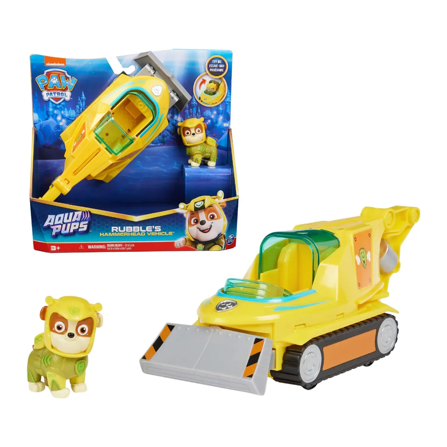 Includes: 1 transformable rescue vehicle, 1 Rubble character. Join Rubble and the PAW Patrol Aqua Pups for action-packed, fun-filled underwater explorations.