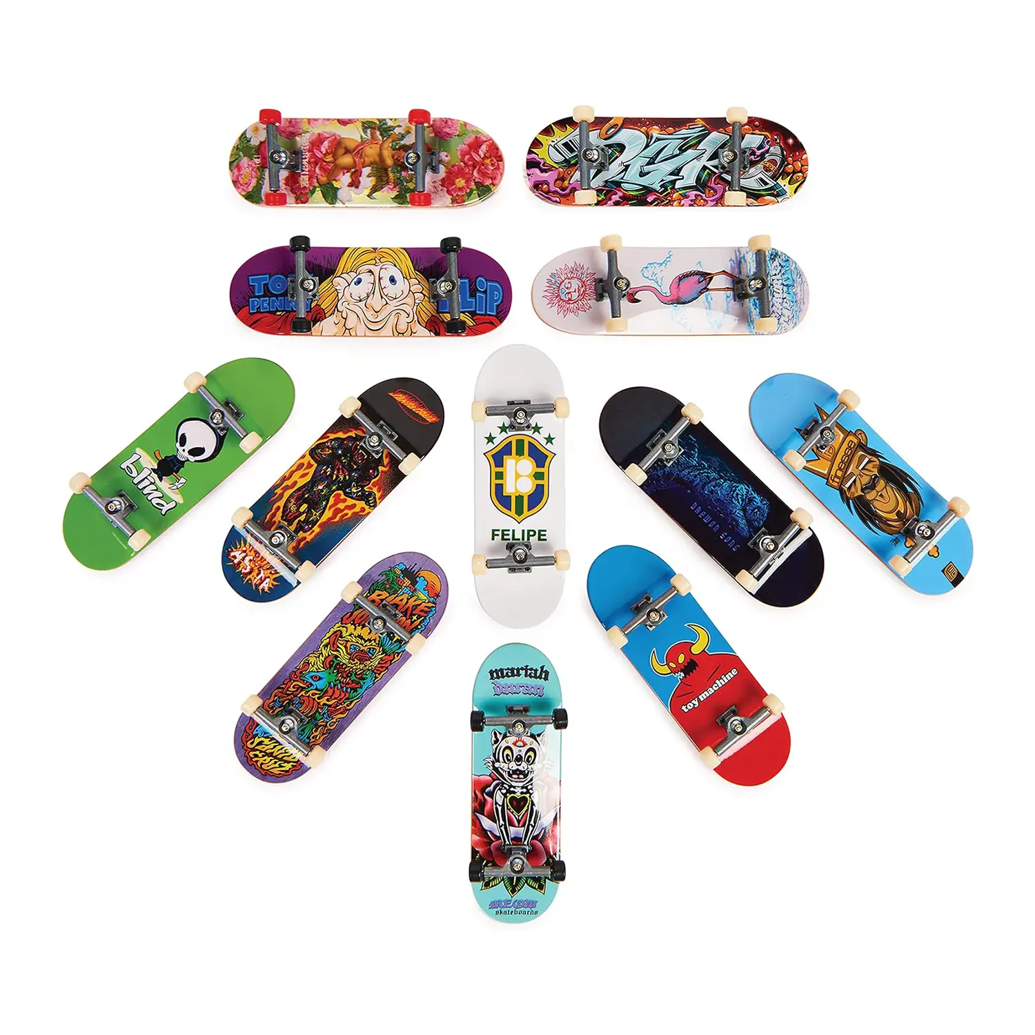 - ✅ Mini skateboard da collezione con grafiche autentiche dei brand più famosi.