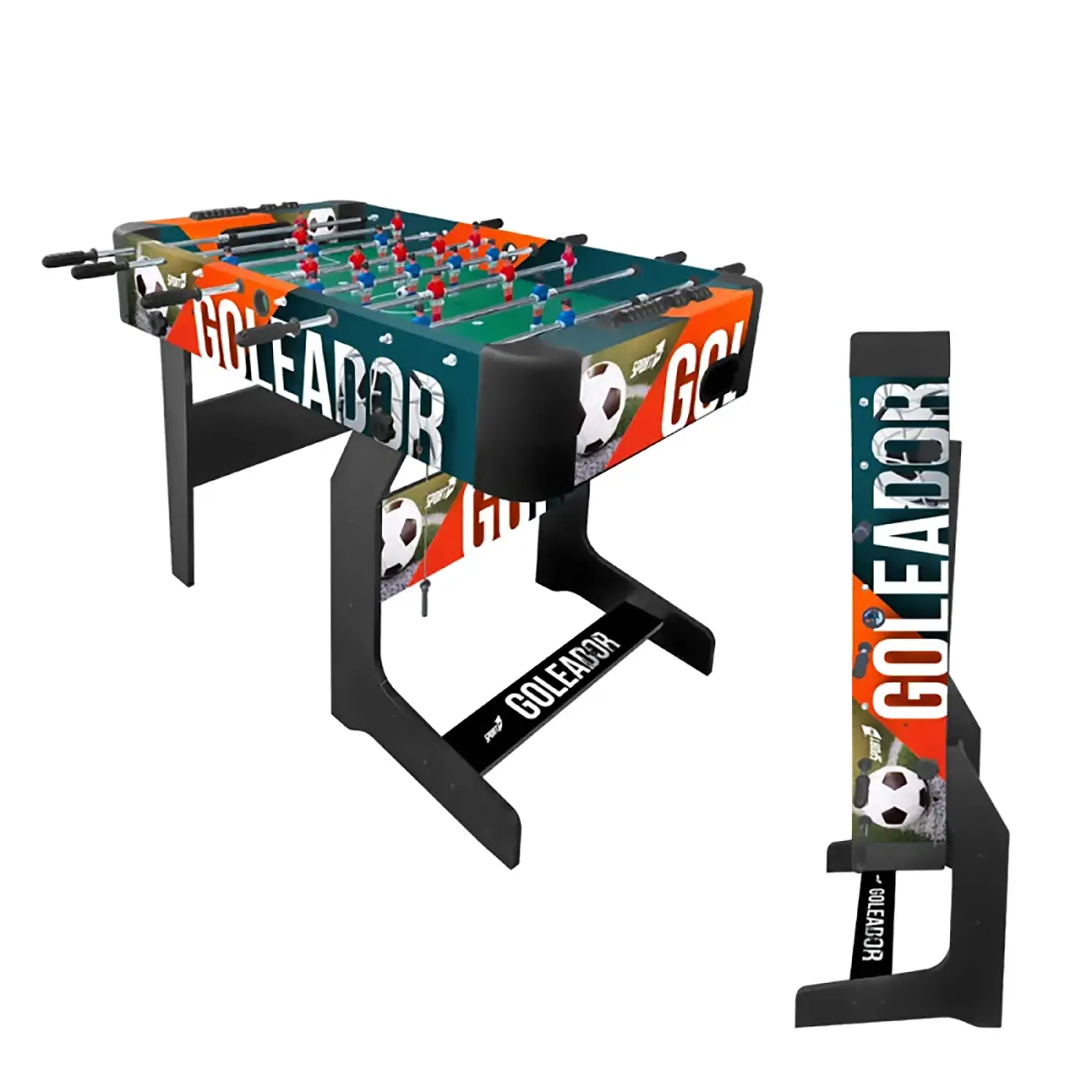 Foosball table made of MDF equipped with telescopic scoring rods. Perfect for the little ones, with this table football you can play small teams together! Its folding system allows for space-saving storage in small spaces.