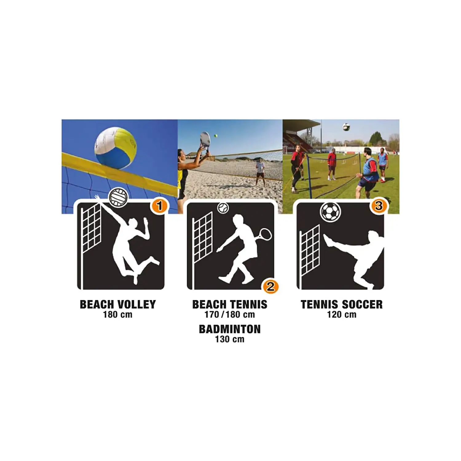 - ✅ Set multisport per giochi all'aperto: beach volley, beach tennis, badminton e tennis soccer.