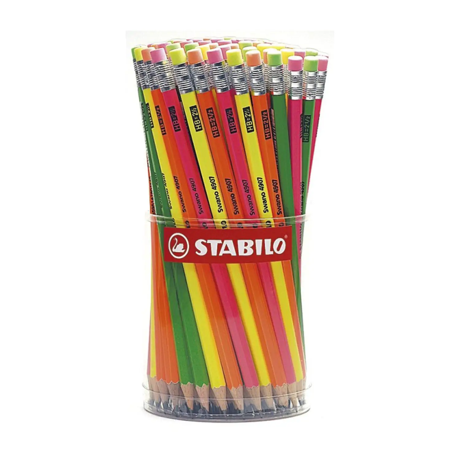 Matite Swano Fluo STABILO HB con Gommino – Barattolo da 96 Pezzi