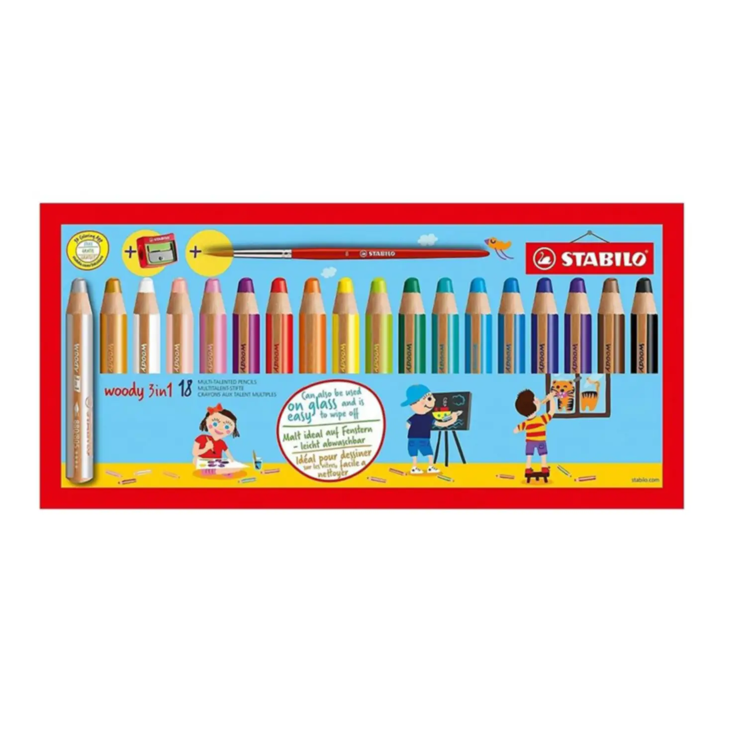 - Contenuto: 18 pastelloni Stabilo Woody 3 in 1, 1 pennello e 1 temperone.