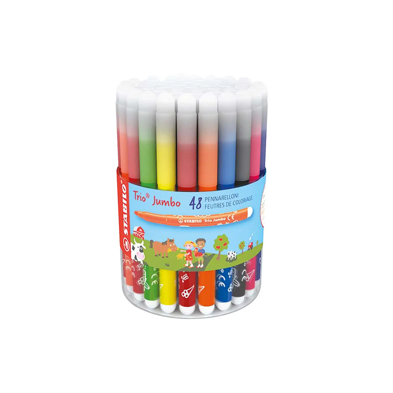 Pennarelli STABILO Trio Jumbo – Punta Grossa e Impugnatura Ergonomica – Set da 48 Pezzi