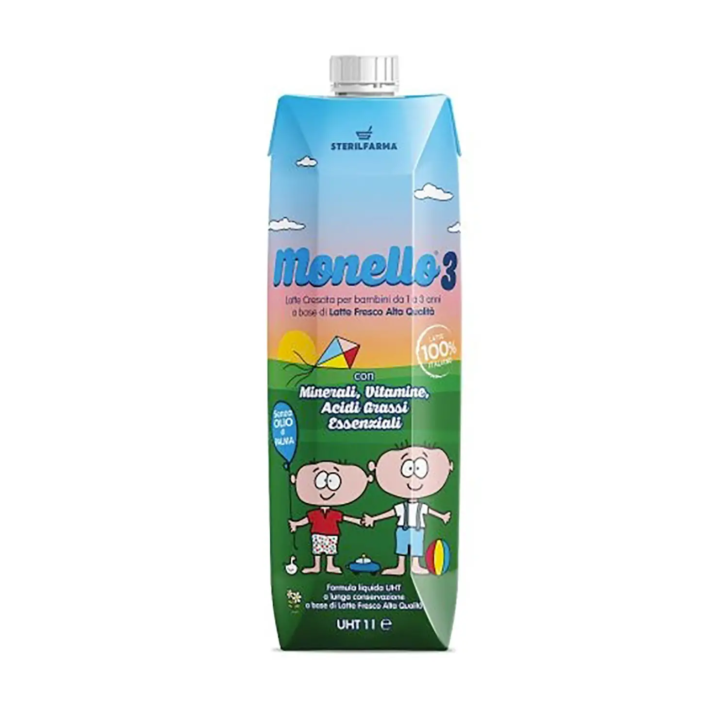 Latte Monello 3 Liquido per Bambini 1-3 Anni Monello 3 è una formula liquida UHT a lunga conservazione, pensata per l’alimentazione dei bambini nella prima infanzia. Ideale da solo, con cereali o per la preparazione delle pappe.