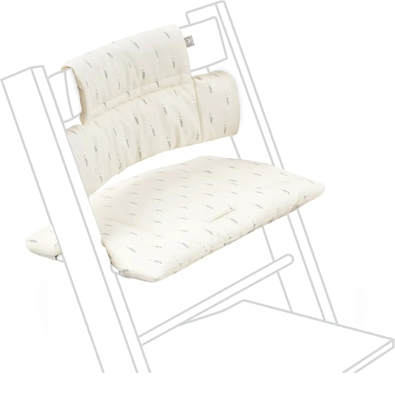adds softness and comfort an easy and versatile way to change your look and give it a personal touch easy to install and remove compatible with all Tripp Trapp chairs with or without Baby Set with easy-to-clean cover certified according to Oeko Tex 100 standard. machine washable at 40° C