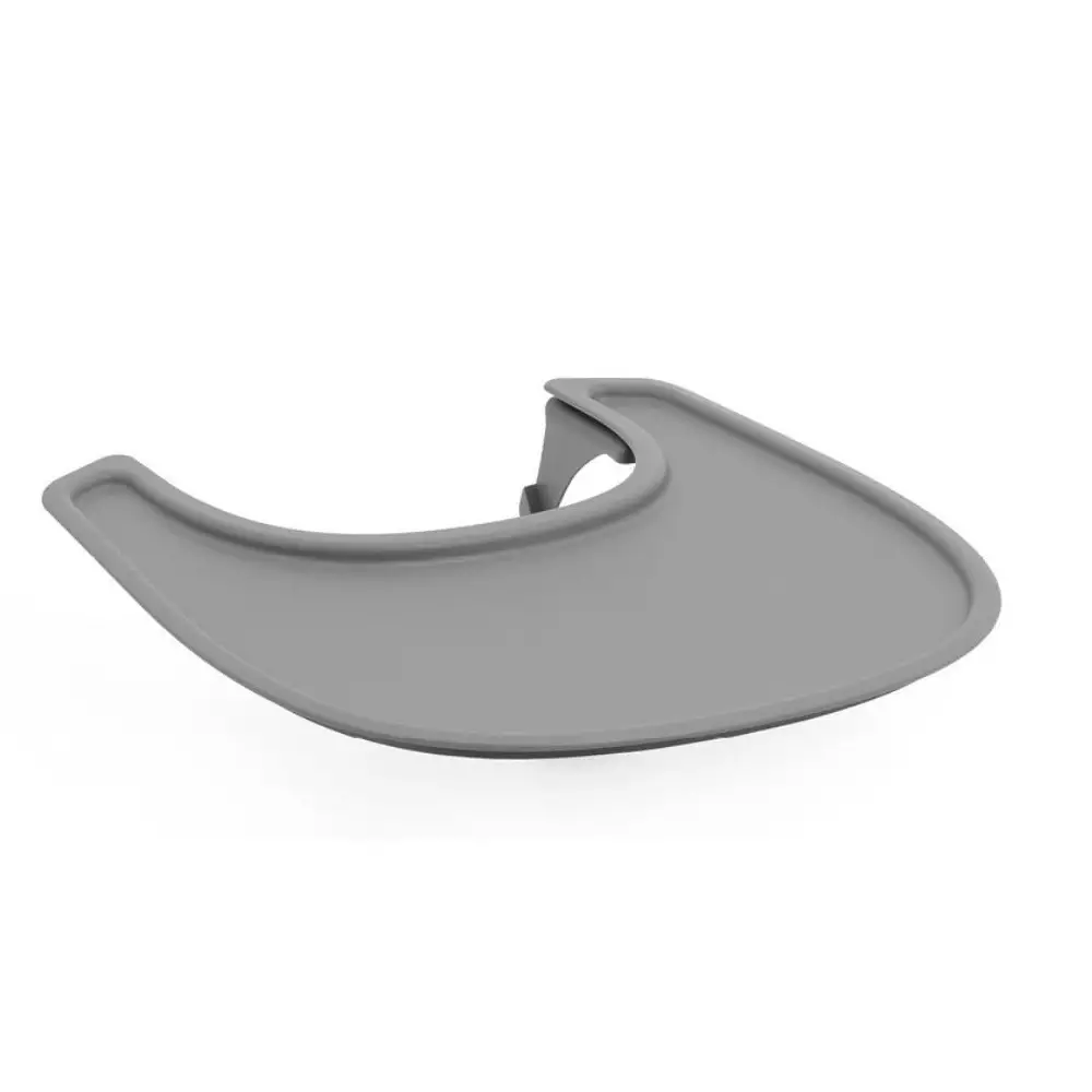 Il vassoio Nomi di Stokke si attacca facilmente al Baby Set del seggiolone Nomi scorrendo sul sistema di ritenuta finché non fa “click”.