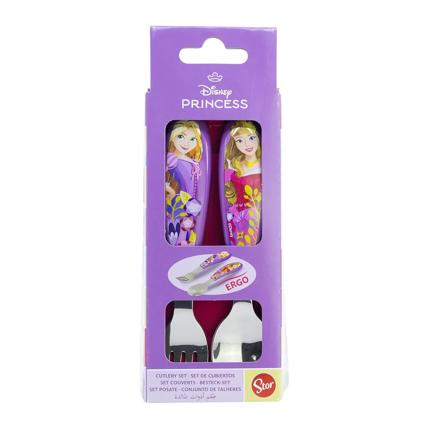 Set posate Principesse per bambini Il set composto da cucchiaio e forchetta dedicato alle principesserende il momento del pasto più divertente e coinvolgente per i più piccoli.