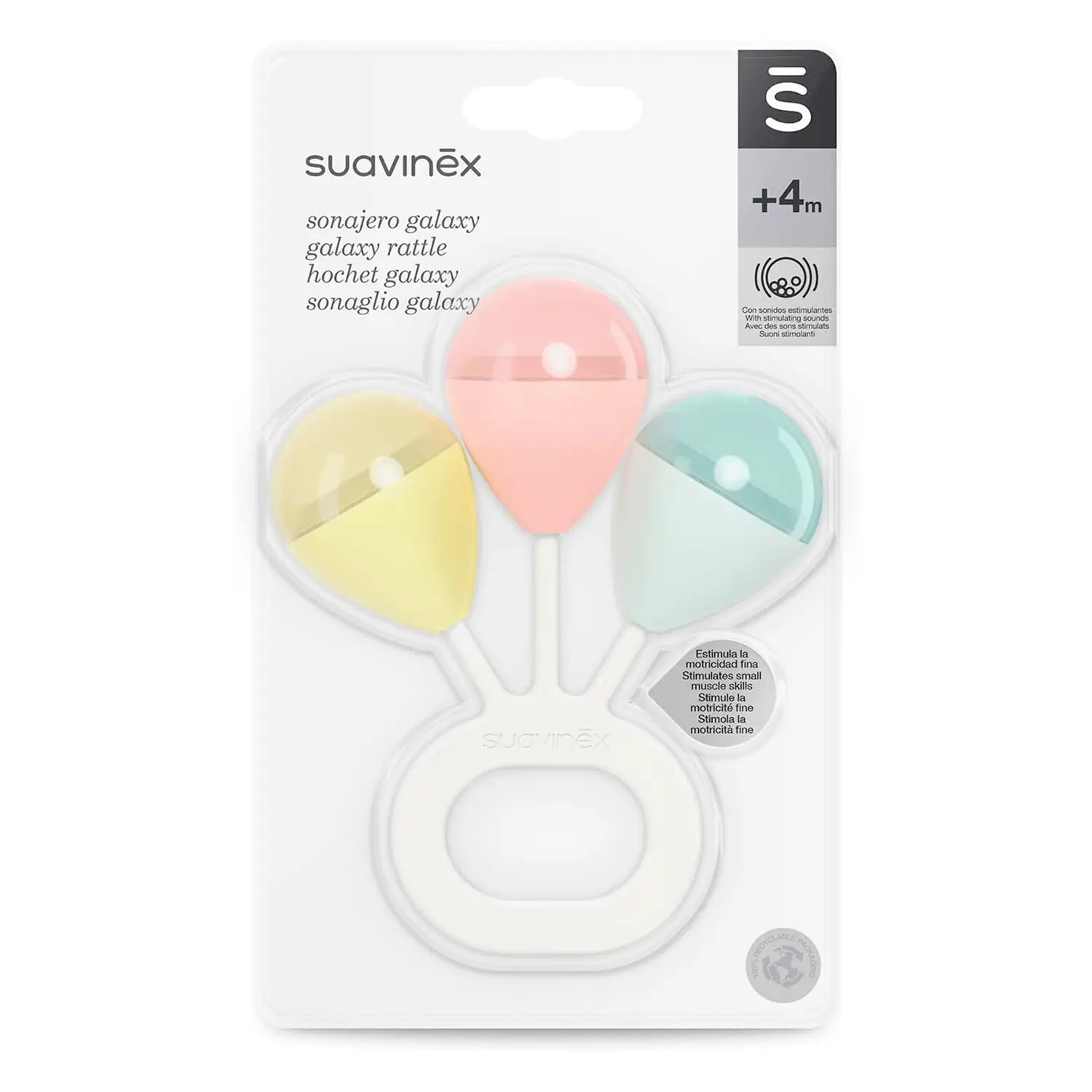 Sonaglio colorato: gioco e stimolazione dai 4 mesi Questo sonaglio è ideale per neonati a partire dai 4 mesi. I suoi colori vivaci e il suono delicato delle palline catturano l’attenzione del bambino, stimolandone la curiosità e l’interazione.