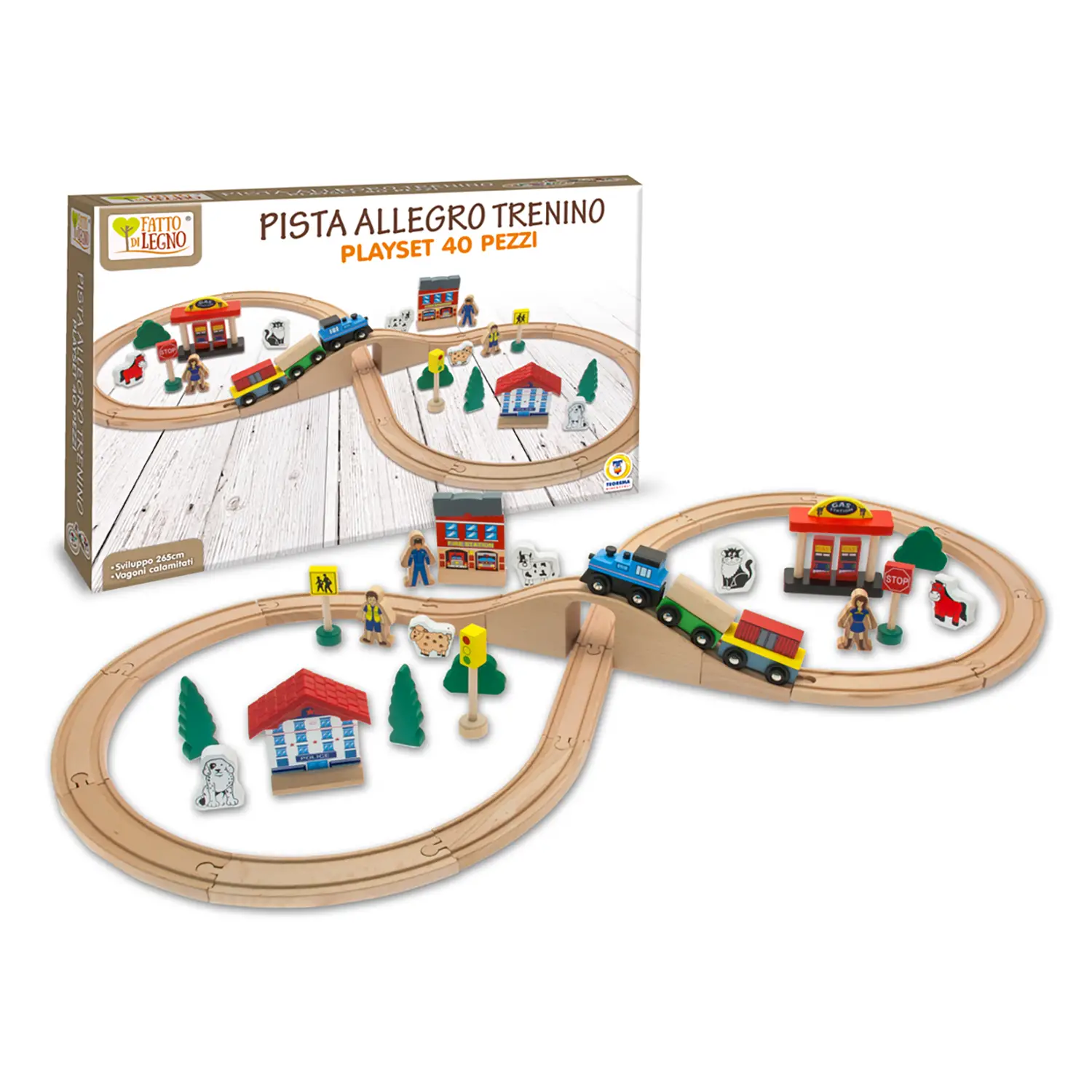 Scopri il Fatto di Legno - Allegro Trenino 40 Pz Pista 265cm
