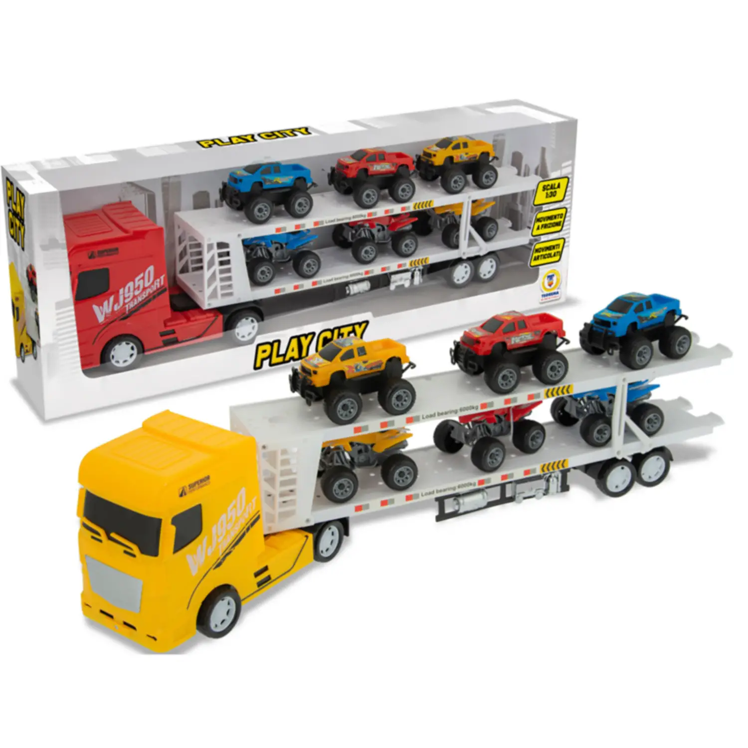 Il Play City - Camion Bisarca autoarticolata sembra essere un divertente set di gioco in scala 1:30 con una camion bisarca che trasporta 6 modellini di veicoli. Ecco alcune caratteristiche e vantaggi di questo giocattolo: