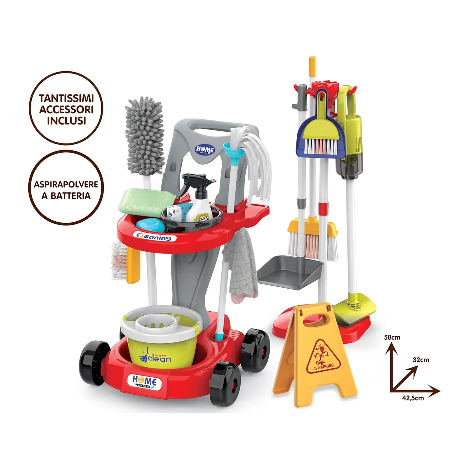 - ✅ Include aspirapolvere giocattolo funzionante, scopa e mocio per un'esperienza di gioco realistica.