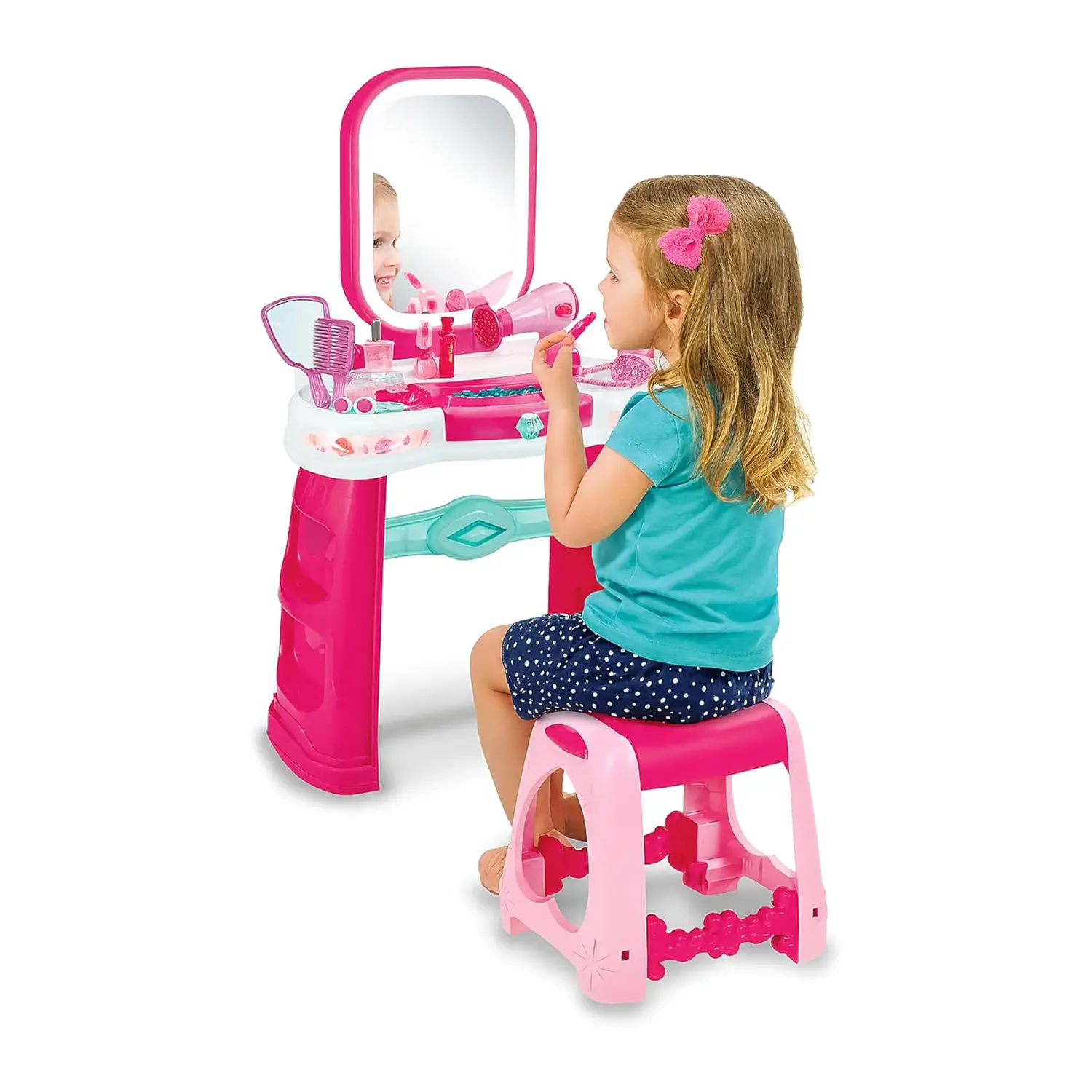 Phon Funzionante e Set Completo Incluso un asciugacapelli a batteria funzionante! La specchiera comprende spazzola, pettine, rossetti giocattolo e accessori, garantendo ore di divertimento senza fine.