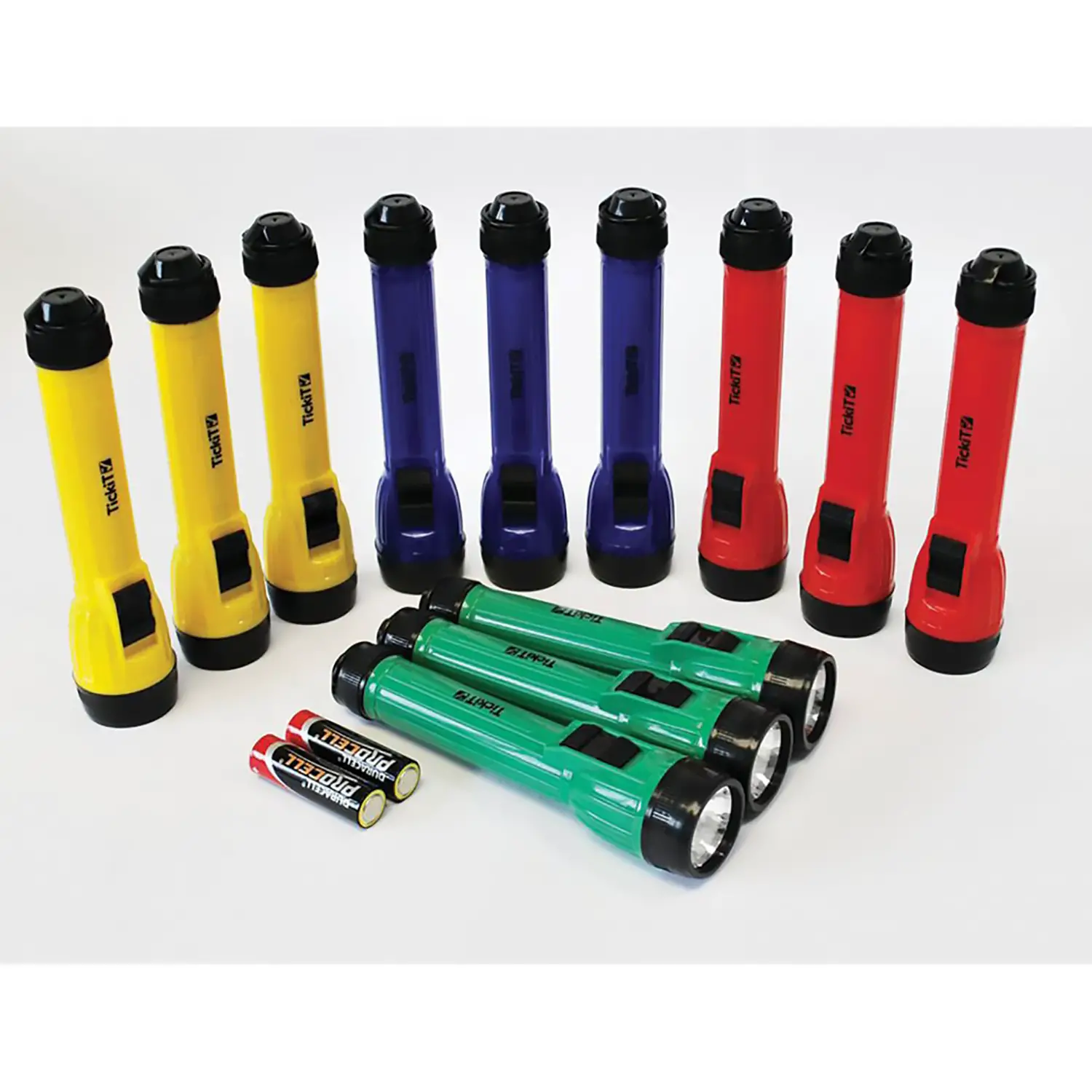 Varietà di Colori: Il set include torce assortite in quattro vivaci colori - giallo, verde, rosso e blu - aggiungendo un elemento di divertimento e personalizzazione all’attività di apprendimento.