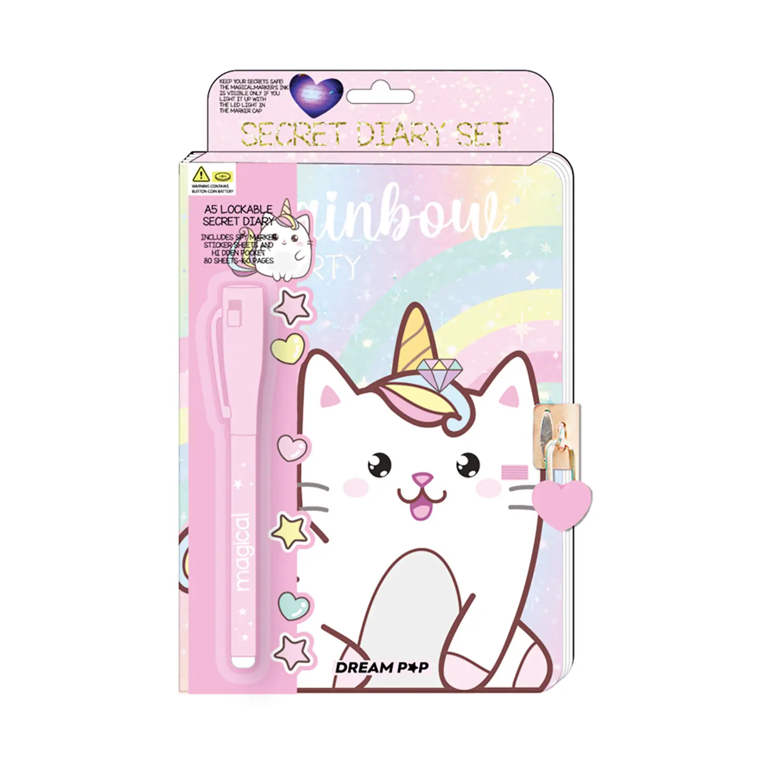 Scrivi i tuoi segreti con un tocco di magia! Il Set Diario Segreto con Penna Magica Caticorn di Tri-Coastal Design è perfetto per piccoli sognatori e amanti degli unicorni. Decorato con il dolcissimo Caticorn (metà gatto, metà unicorno), questo diario colorato è l’alleato ideale per custodire pensieri, sogni e avventure quotidiane.