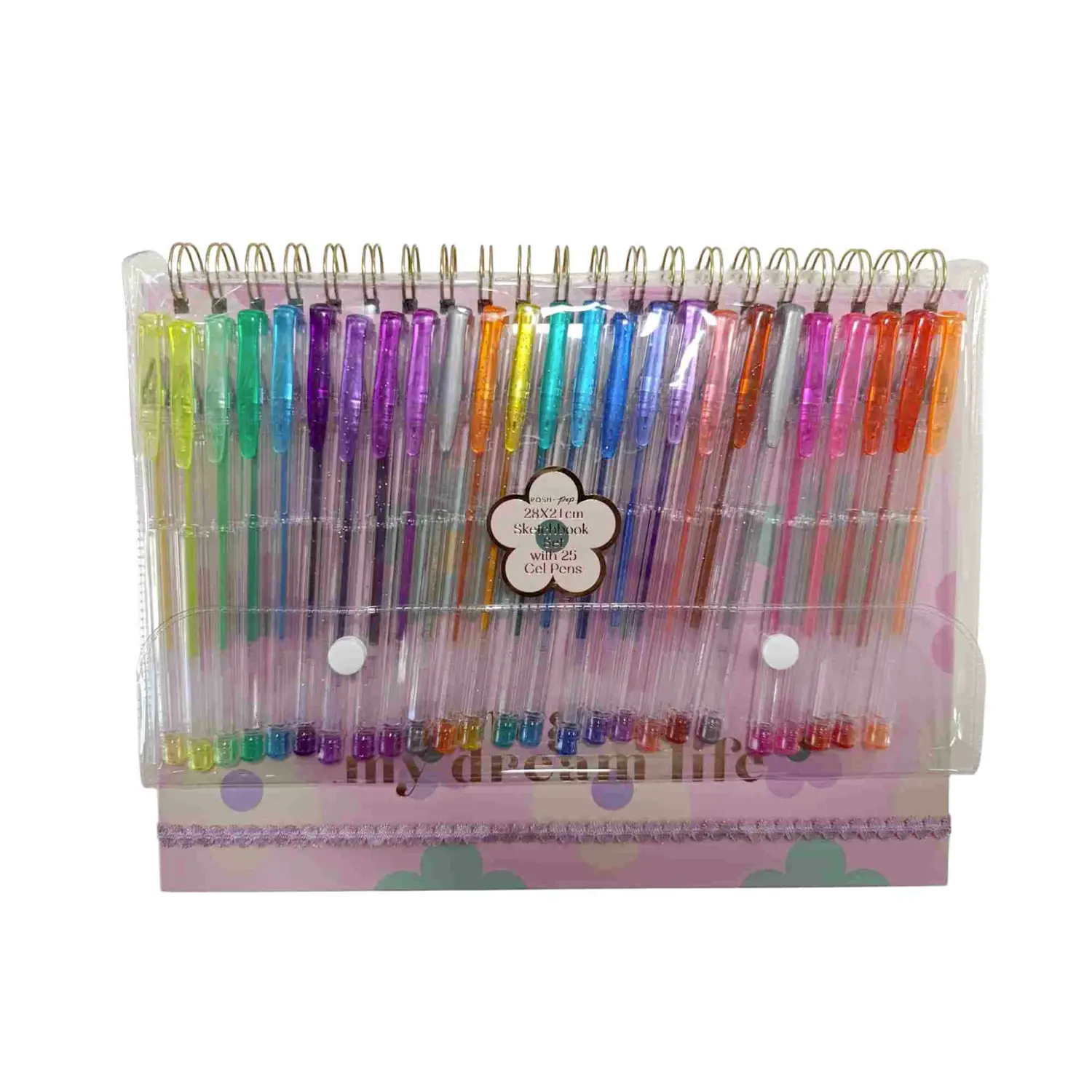 - ✅ Set completo con sketchbook 28x21 cm e 25 penne gel colorate