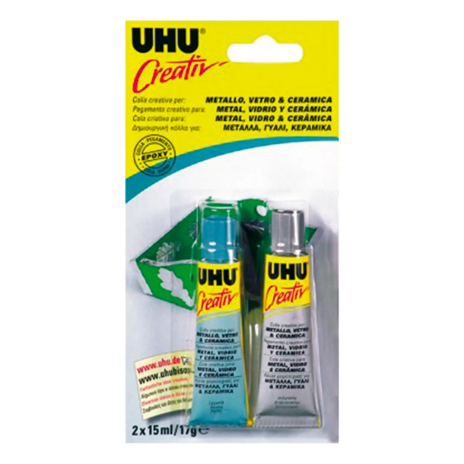 Contenuto 2x15 ml. Applicazione metallo, vetro, ceramica. Uhu Creativ Gamma di prodotti per soddisfare tutte le esigenze di incollaggio nello svolgimento di attività creative (decoupage, cartonnage, mosaico. ecc.). All’interno di ogni confezione è incluso un libretto-guida di 16 pagine con idee, consigli, modalità di utilizzo e 4 progetti da sviluppare passo-passo.