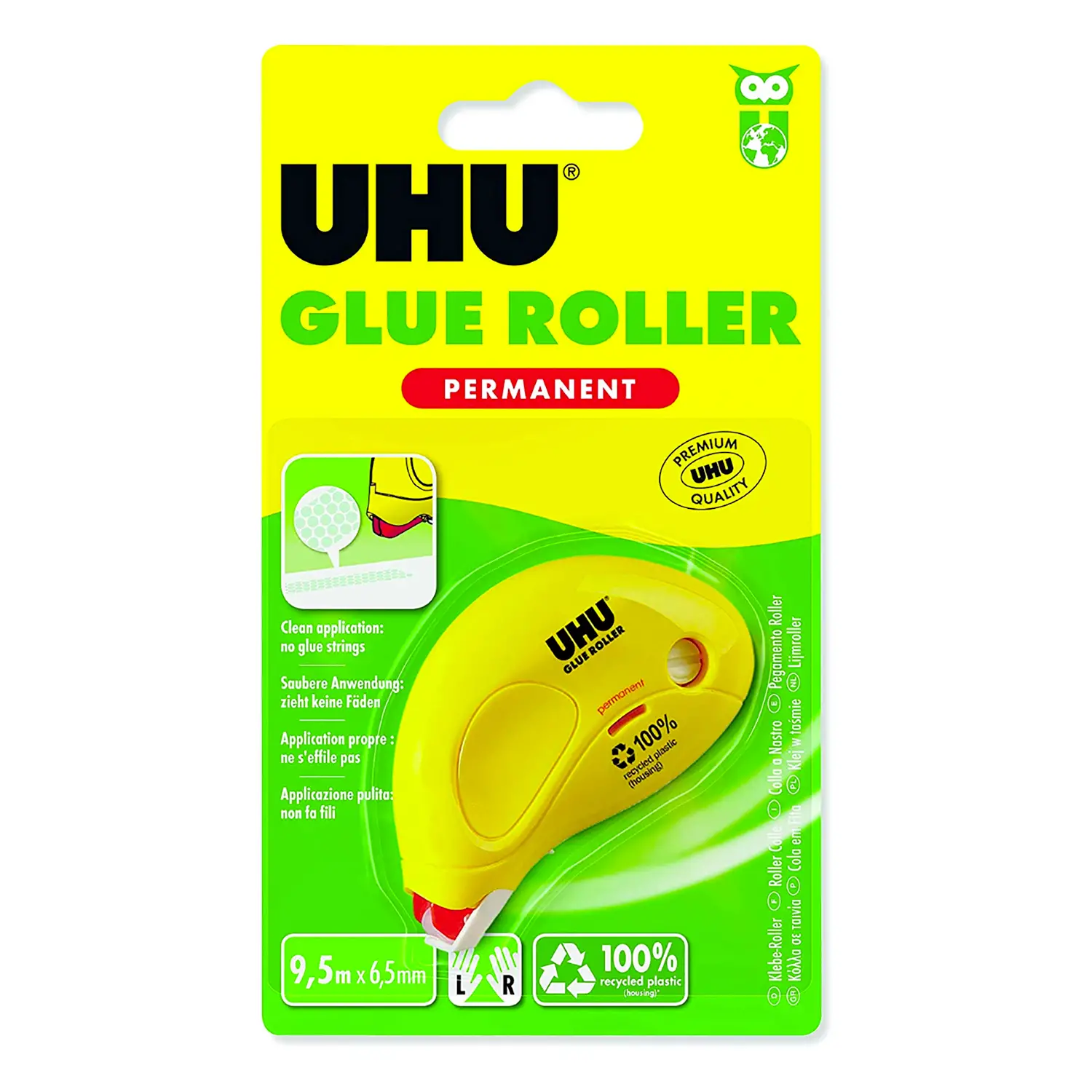 UHU Glue Roller Dry & Clean Permanente UHU Glue Roller Dry & Clean è un pratico dispenser di colla a nastro permanente ideale per incollaggi rapidi, puliti e precisi. Perfetto per lavori di ufficio, scuola, scrapbooking e album fotografici.