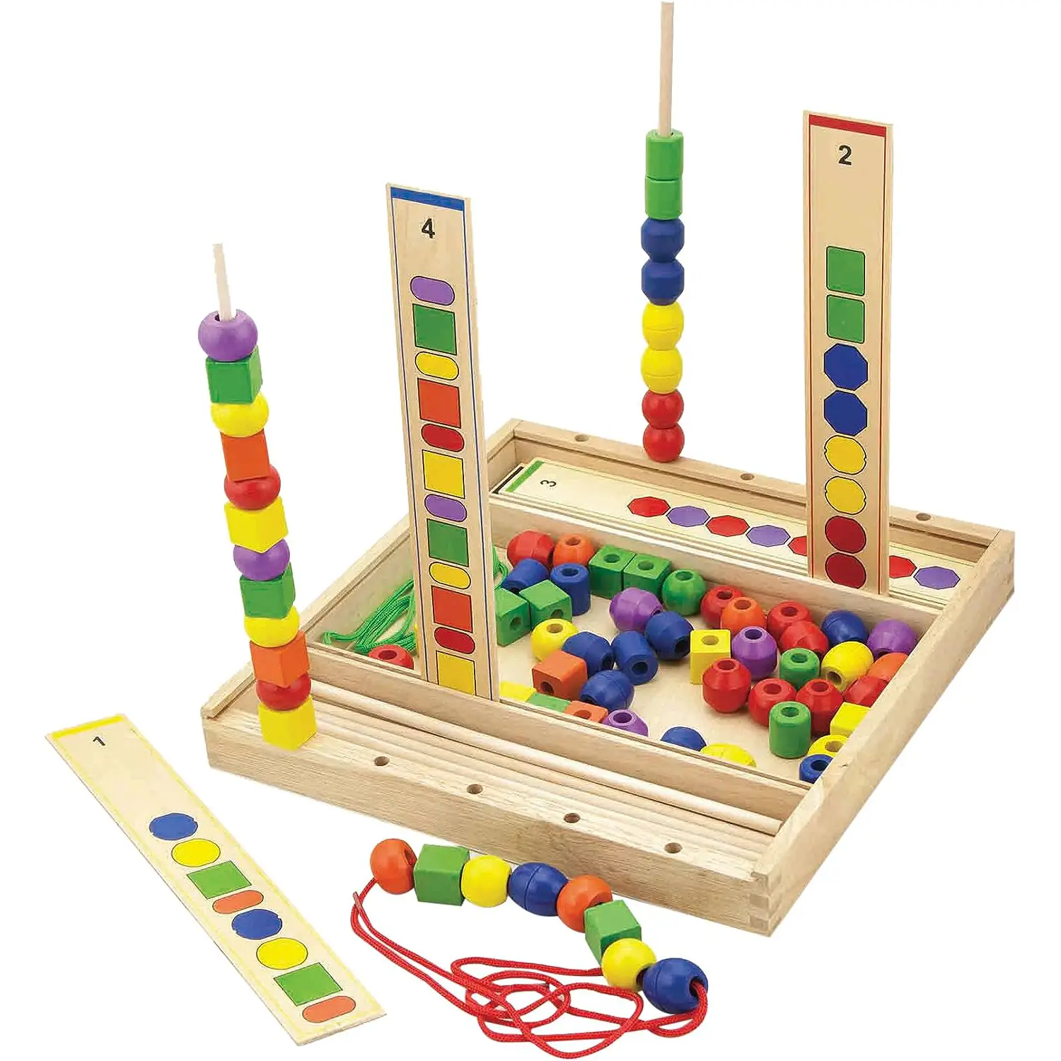 This game is suitable for children over 3 years old. With Bead Sequences with cards, children can learn by playing!