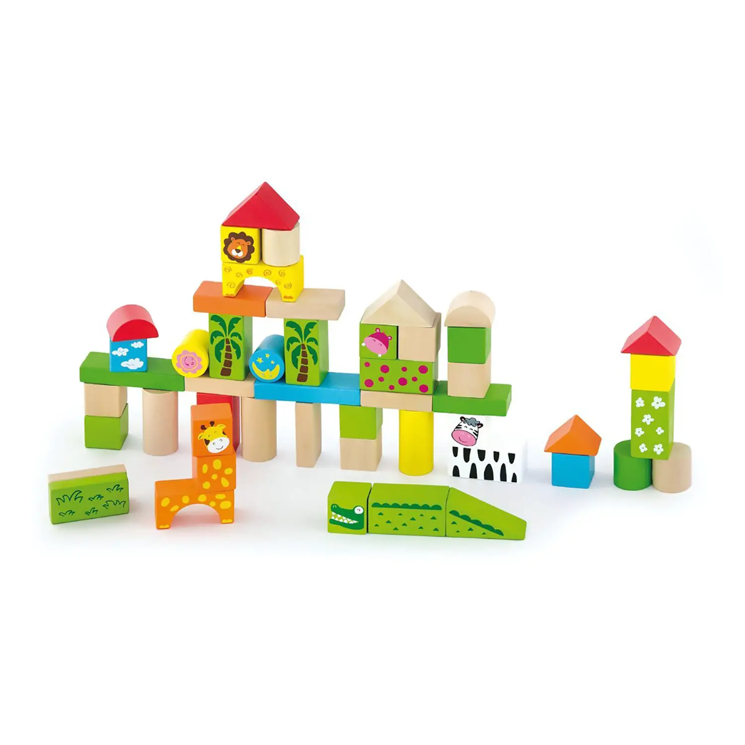 - ✅ 50 blocchi in legno naturale con colori vivaci e atossici