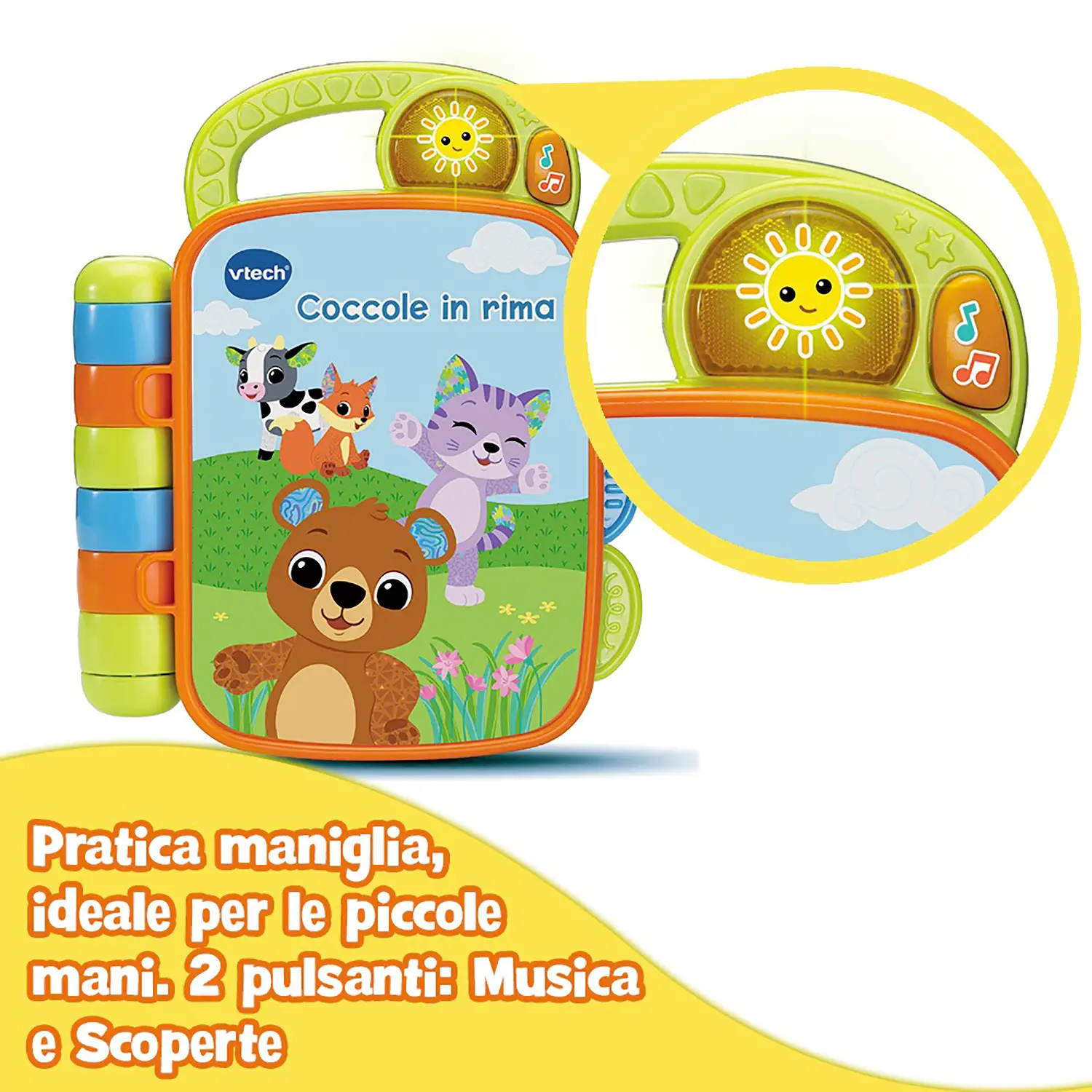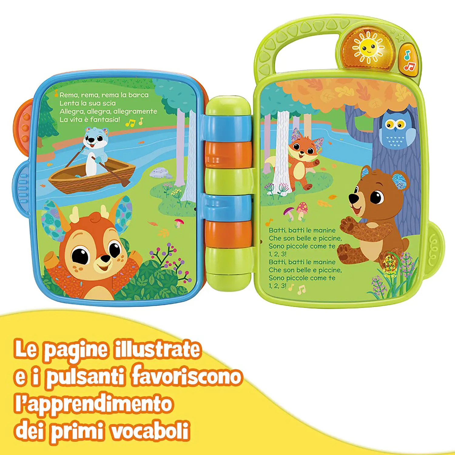Libro Interattivo per le Prime Scoperte Coccole in Rima è un libricino musicale pensato per le manine dei più piccoli, ideale per avvicinare i bambini al linguaggio, ai suoni e alla musica attraverso il gioco interattivo.