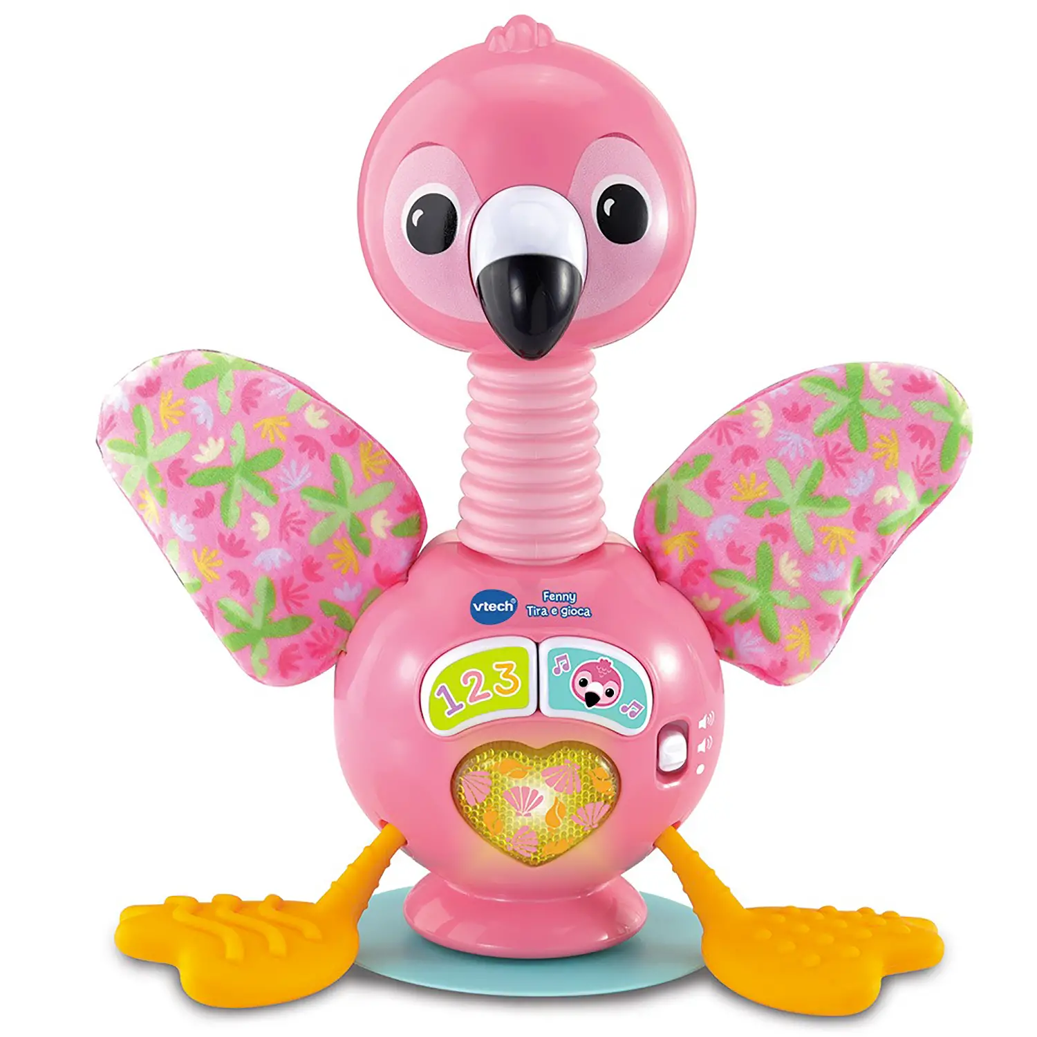 Gioco Interattivo per Prime Scoperte Fenny, Tira e Gioca è un simpatico fenicottero rosa progettato per accompagnare il bambino nelle prime esperienze di gioco. Stimola curiosità e apprendimento attraverso movimenti, luci e suoni pensati per i più piccoli.