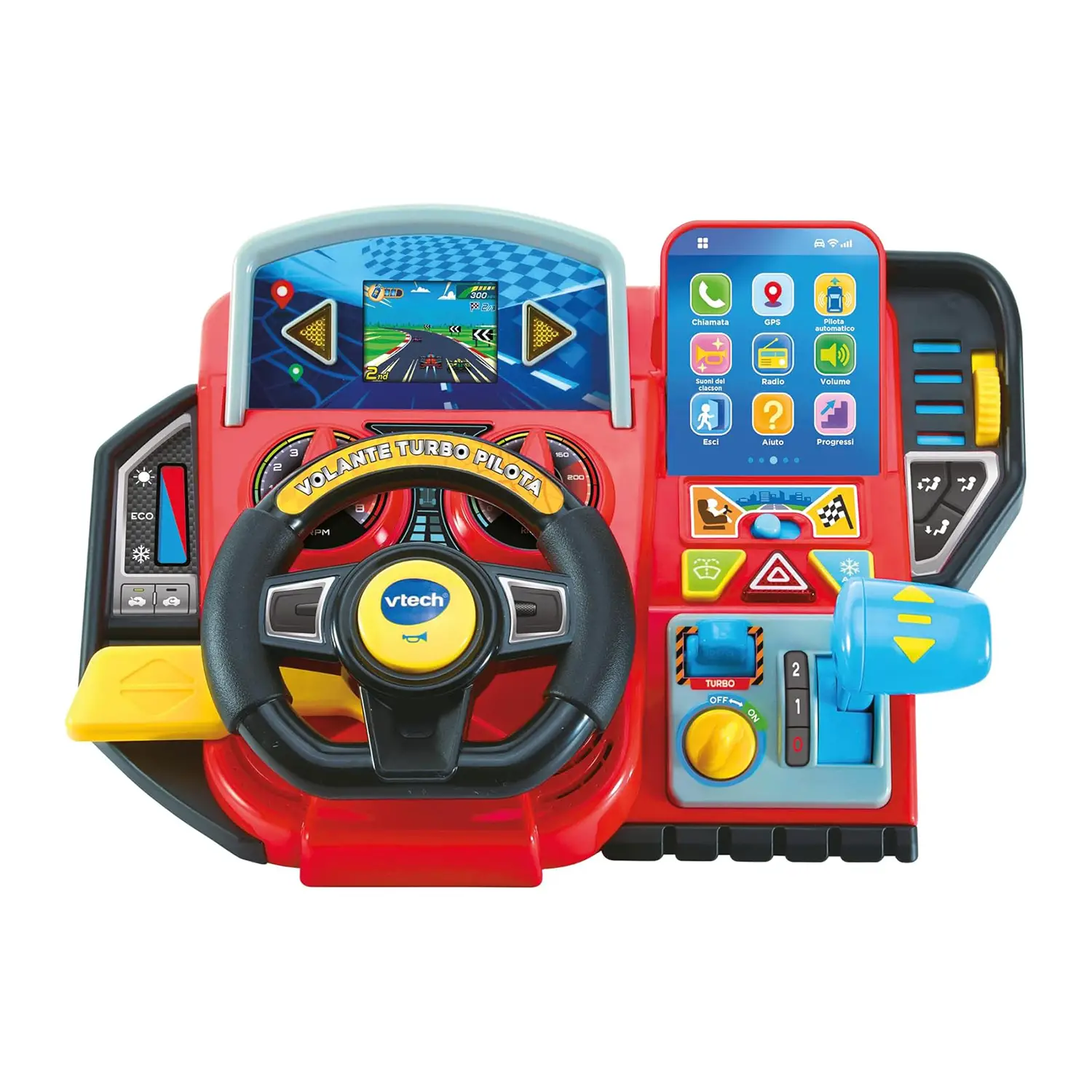 Batterie incluse e lingua italiana Il Volante Turbo Pilota VTech è pronto all’uso, con batterie già incluse e interfaccia completamente in italiano. Un gioco educativo di alta qualità che unisce tecnologia, divertimento e apprendimento, perfetto come regalo per piccoli appassionati di motori.