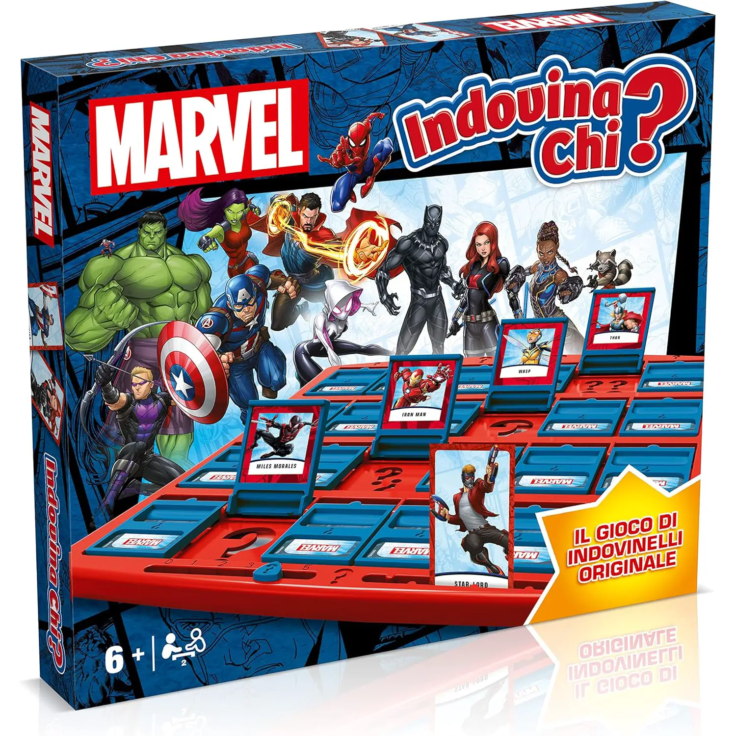 Entra nell’universo di Marvel con Indovina Chi Marvel – edizione italiana, il gioco da tavolo di deduzione per bambini e famiglie ispirato ai supereroi più amati. Sfida il tuo avversario e scopri per primo il personaggio misterioso!