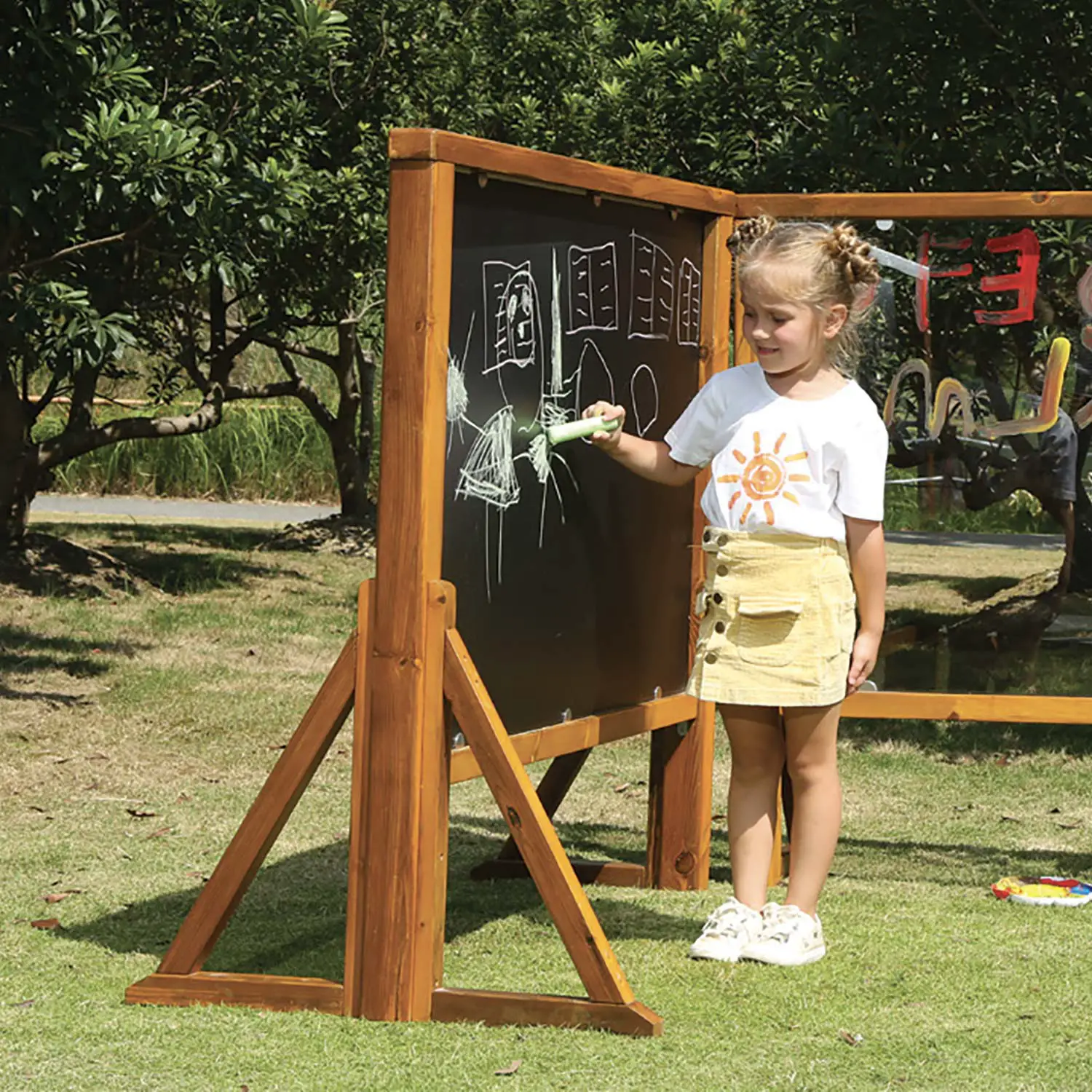 La Lavagna Creativa da Esterno HPL Tipo Ardesia è la soluzione ideale per combinare gioco, apprendimento e creatività all’aperto, stimolando la fantasia dei bambini in un ambiente sicuro e resistente.